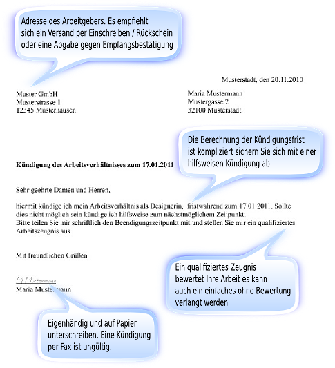 Im folgenden finden Sie ein Bild von einem Kündigungsschreiben als Arbeitnehmer.